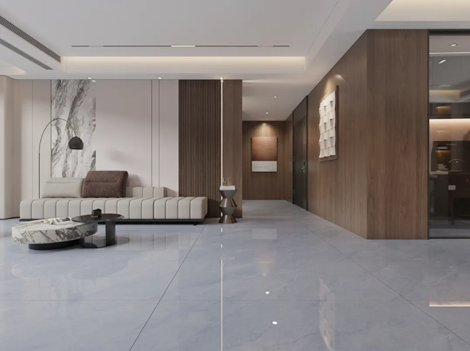 一片蓝灰轻叠于砖面